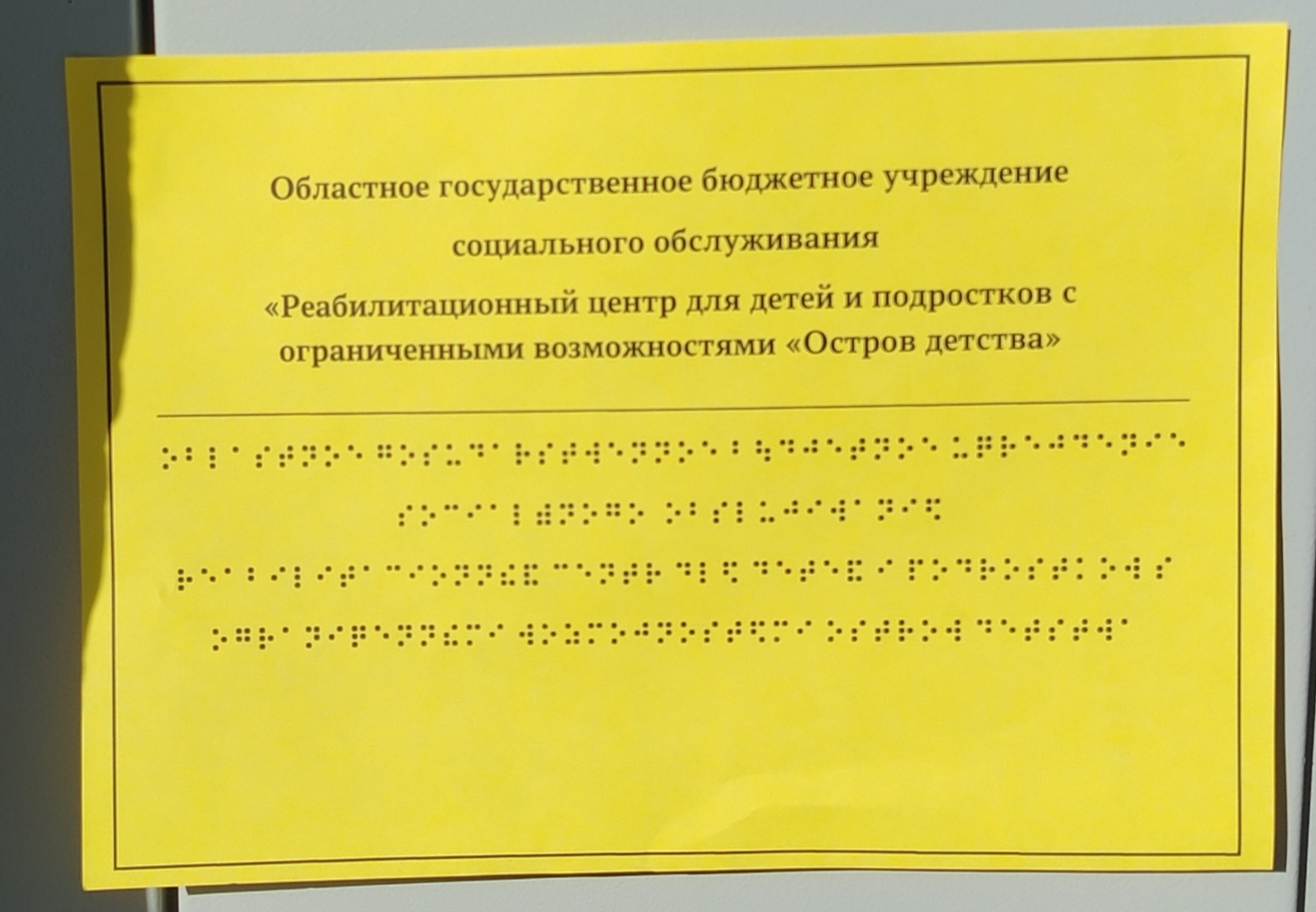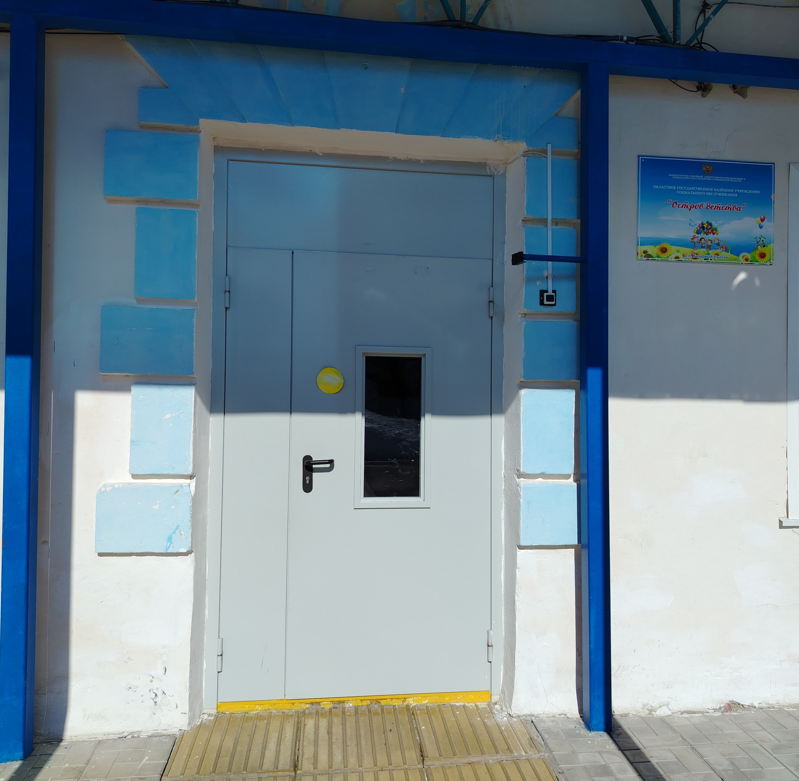 В здании учреждения установлена распашная дверь, в коридорах, столовую и актовый зал. Нижние и верхние ступени выделены желтым цветом, а также имеются телескопический переносной пандус (для инвалидов-колясочников).